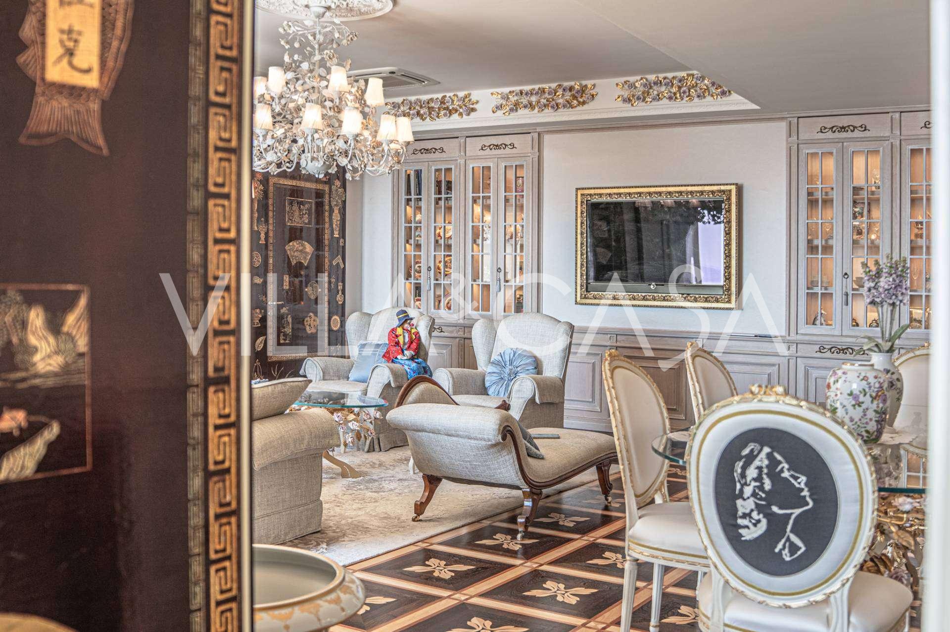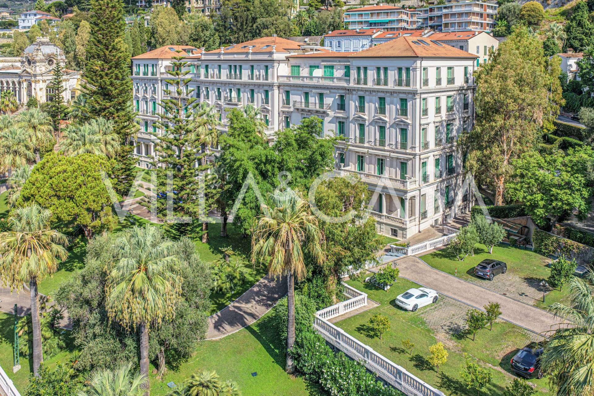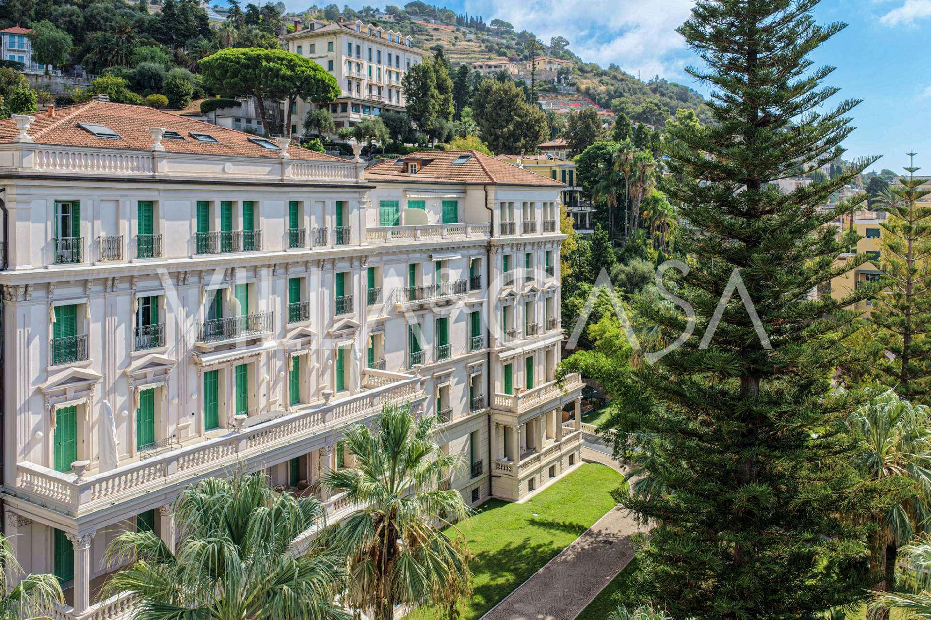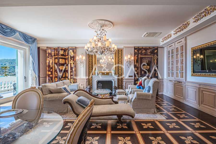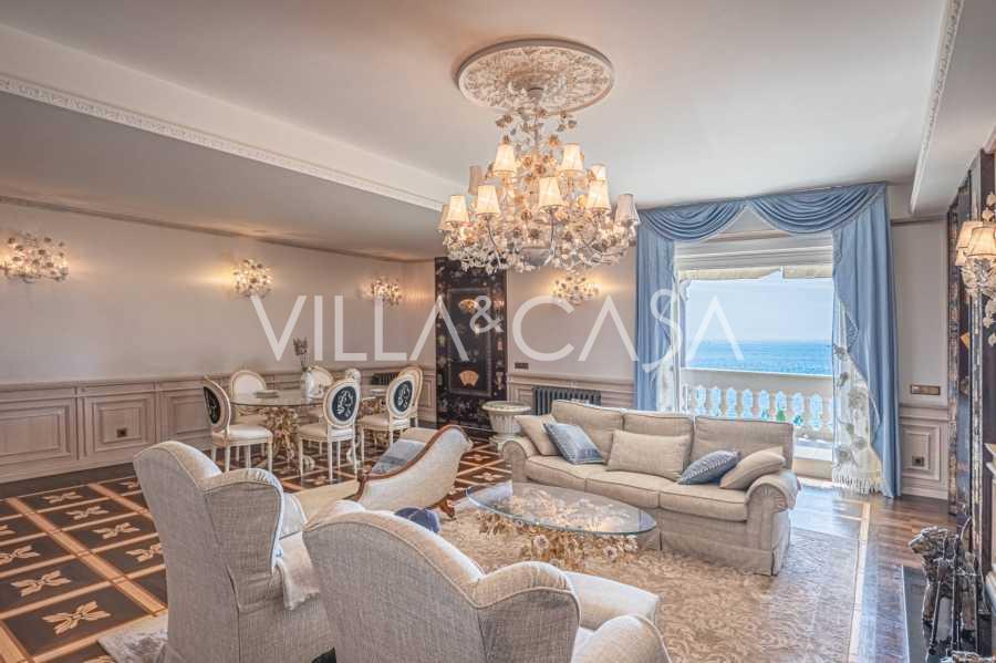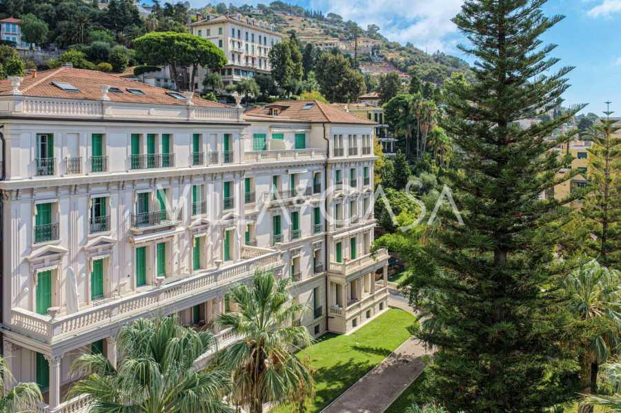 Ospedaletti võluvas keskuses, tuntud elamukompleksis "REGINA", mis on ehitatud endise "Grand Hotel de la Ren" kohale ja täielikult renoveeritud 2007. aastal, pakutakse ainulaadset 205 m2 suurust katusekorterit, mis kehastab laitmatut stiili ja mugavust.
