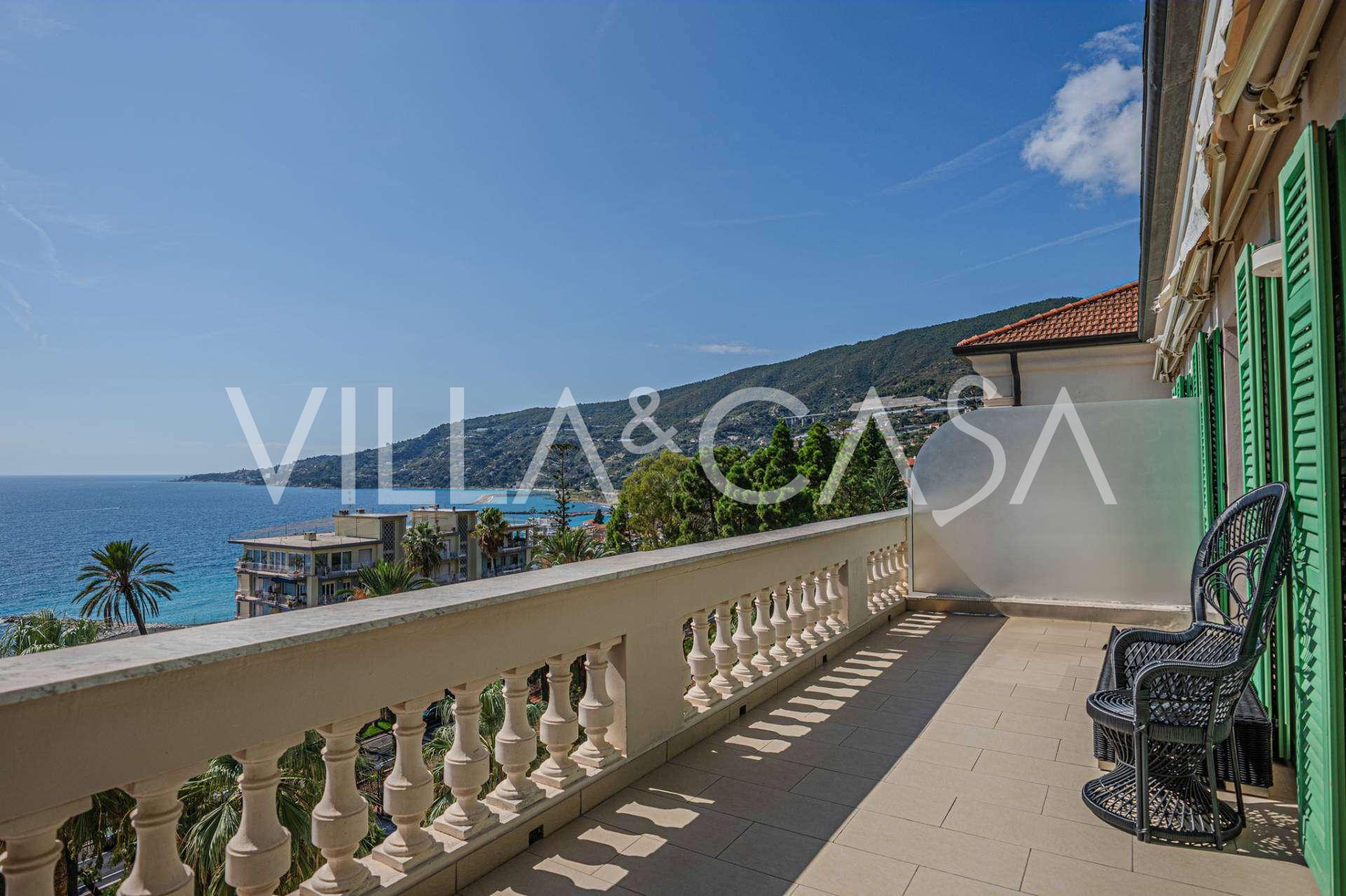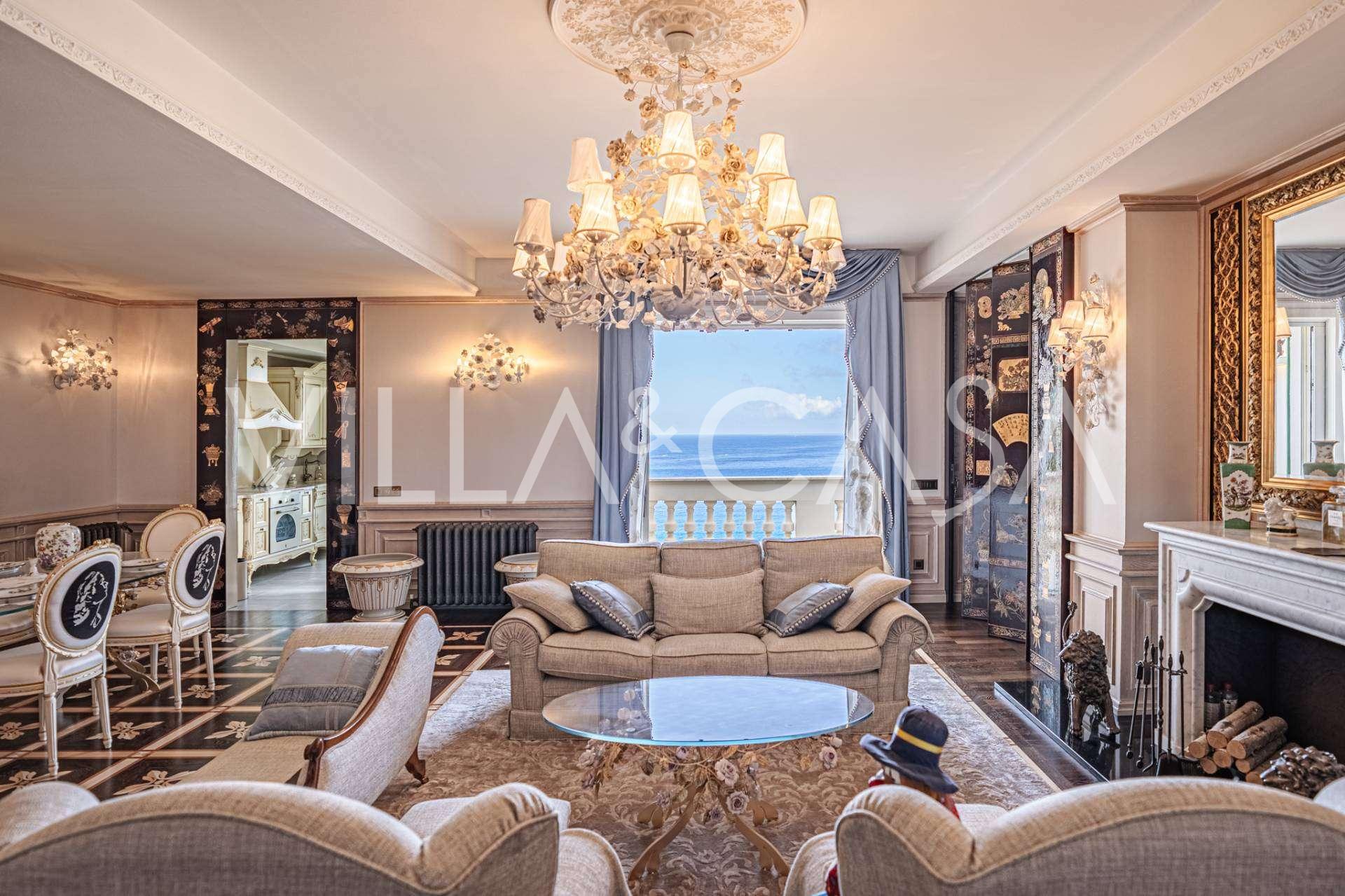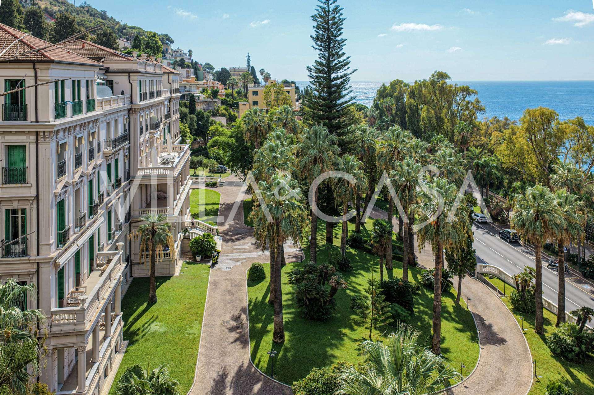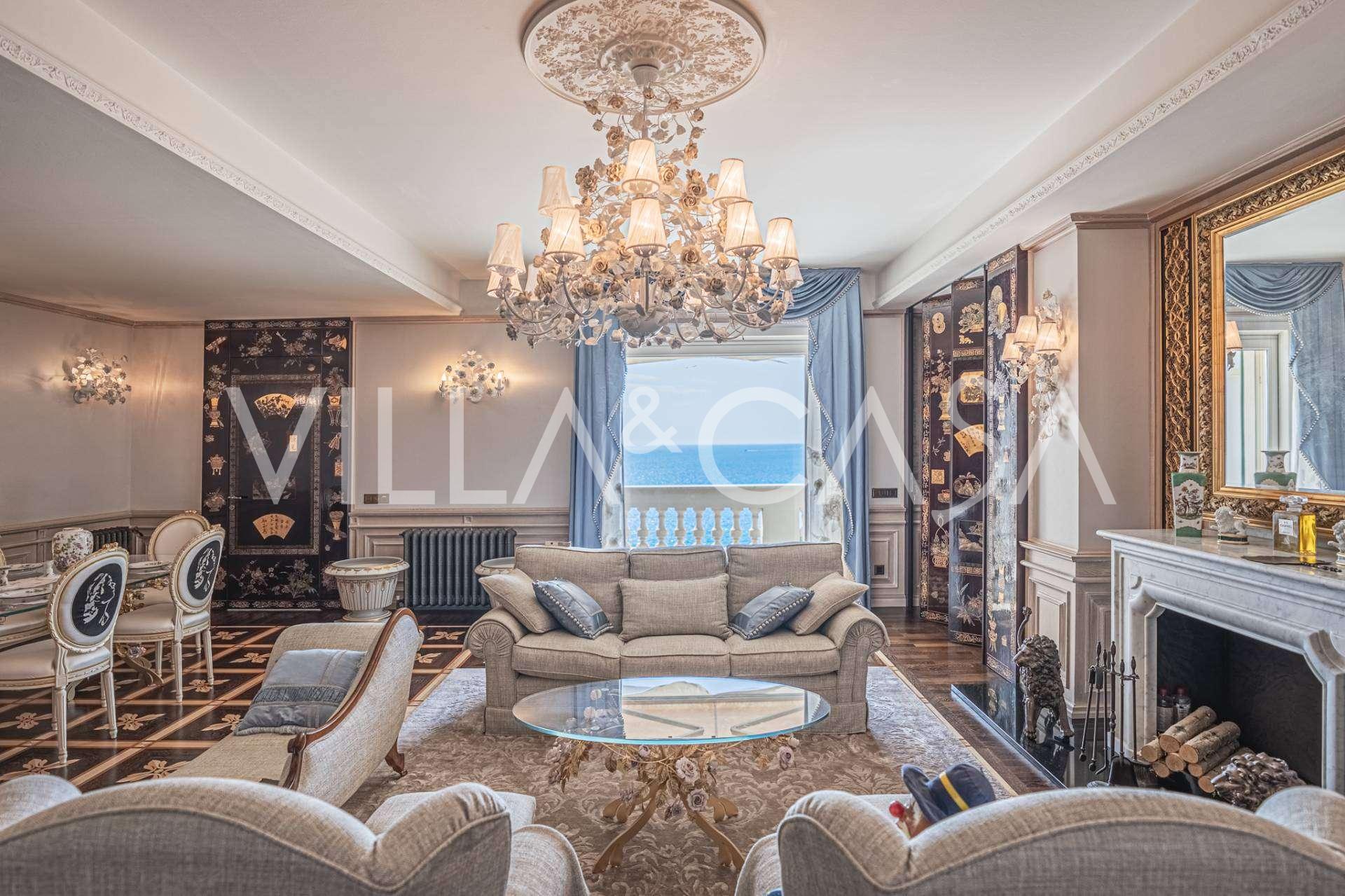 Ospedaletti võluvas keskuses, tuntud elamukompleksis "REGINA", mis on ehitatud endise "Grand Hotel de la Ren" kohale ja täielikult renoveeritud 2007. aastal, pakutakse ainulaadset 205 m2 suurust katusekorterit, mis kehastab laitmatut stiili ja mugavust.