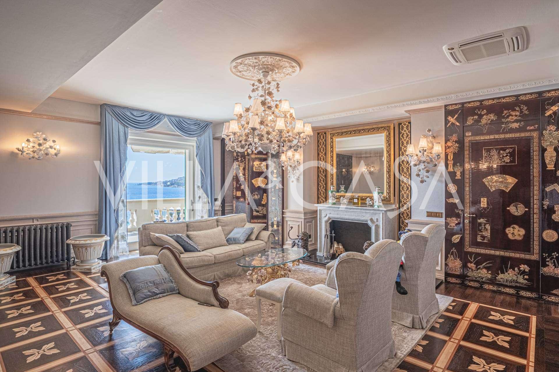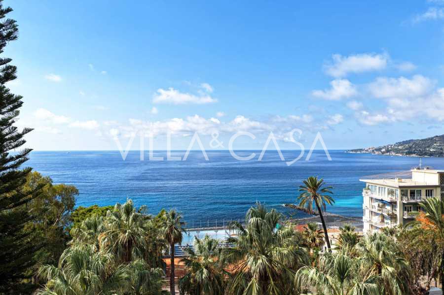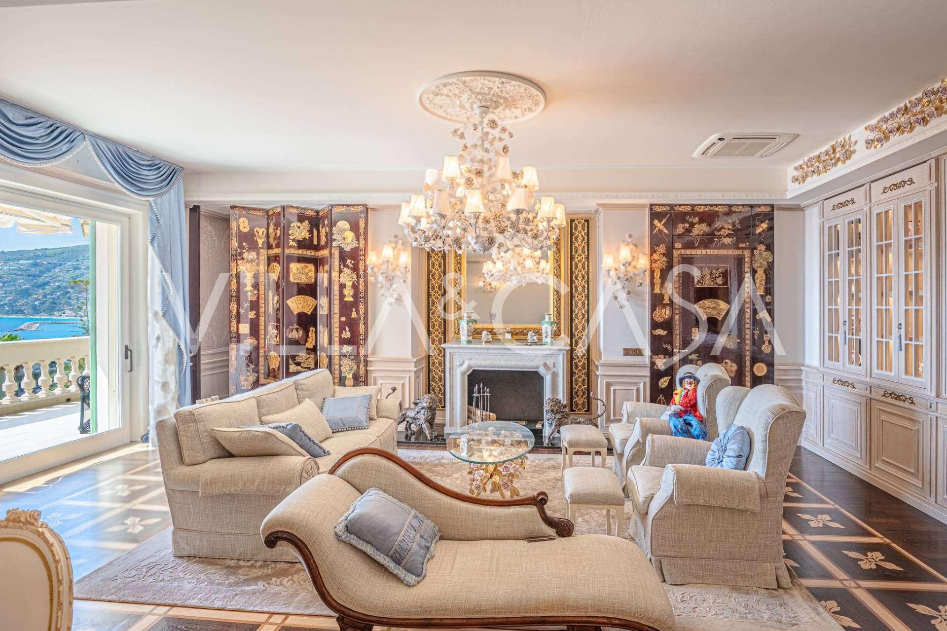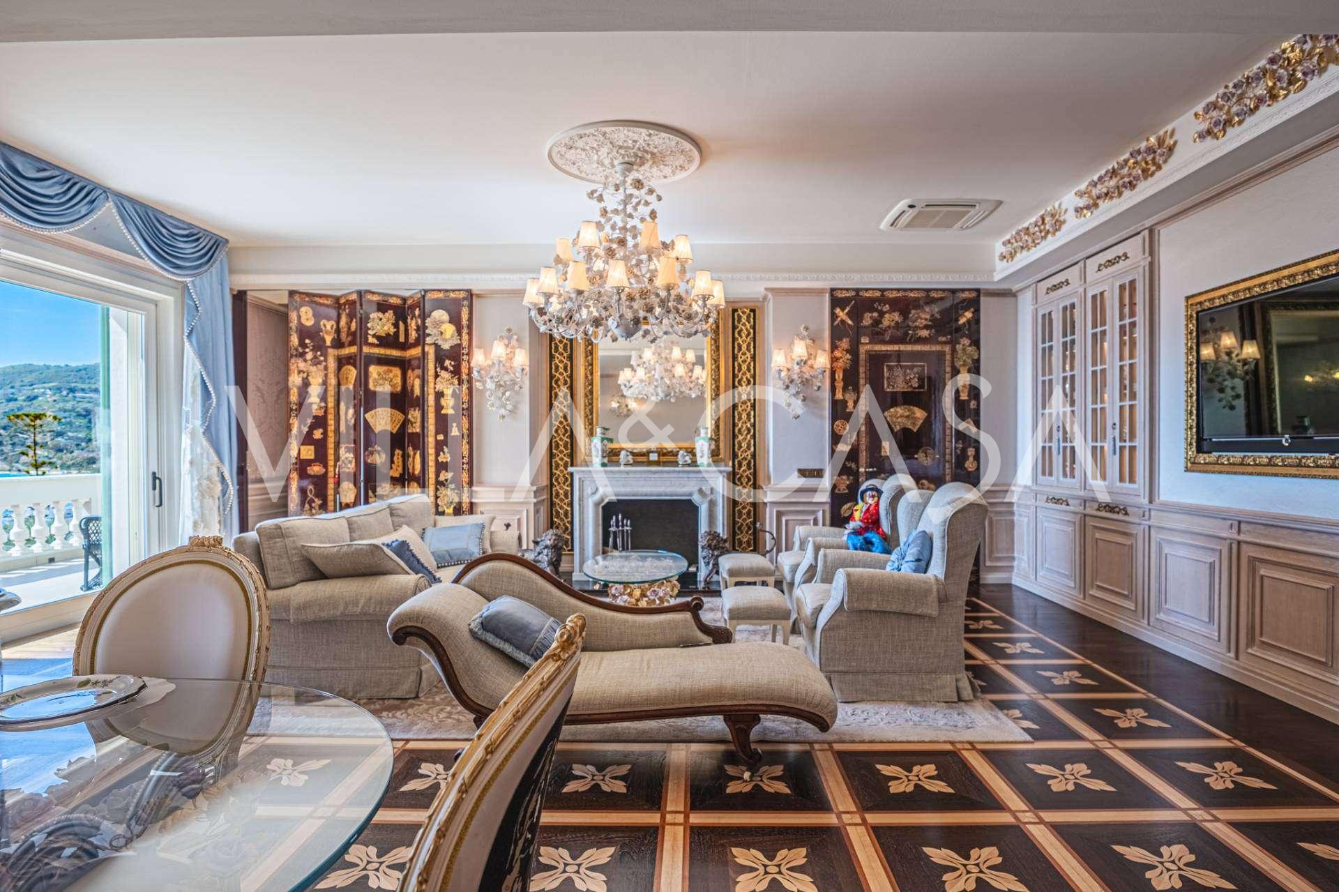 Ospedaletti võluvas keskuses, tuntud elamukompleksis "REGINA", mis on ehitatud endise "Grand Hotel de la Ren" kohale ja täielikult renoveeritud 2007. aastal, pakutakse ainulaadset 205 m2 suurust katusekorterit, mis kehastab laitmatut stiili ja mugavust.